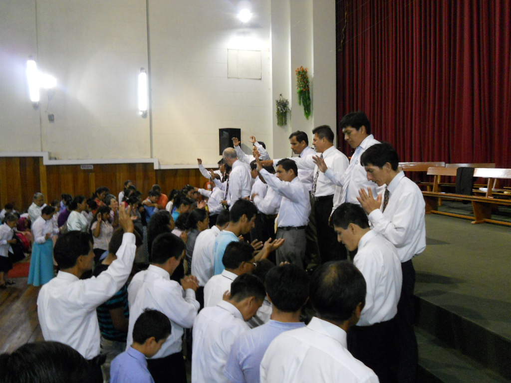 Praying for the sick. Our Bro. Jose is in the foreground; Bro. Arnulfo in the background. He was a minister back when my grandpa was here in Peru. He went and preached in the most dangerous of places where no-one else would dare to go because of the terrorists. One of the greatest heroes, I've ever known of. He'd fit perfectly into Hebrews 11.